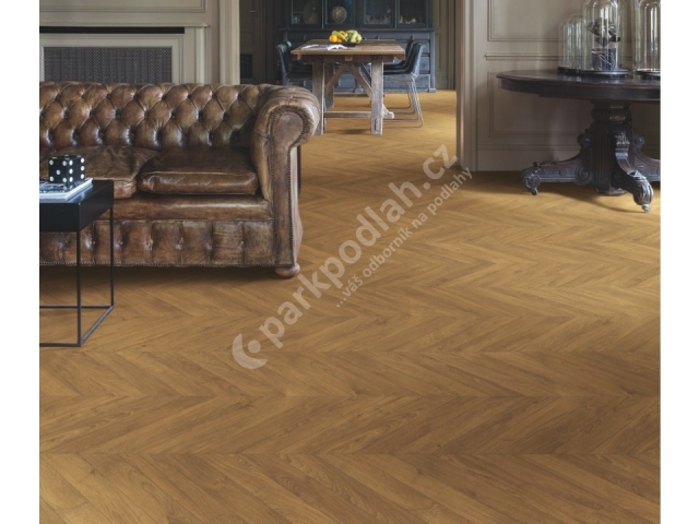 Laminátová plovoucí podlaha od belgického výrobce Quick-Step. IPA4162 Dub Chevron hnědý. Impressive Patterns - tato kolekce obsahuje šest dekorů, které jsou voděodolné a extra odolné proti poškrábání, díky ochraně Scratch Guard.