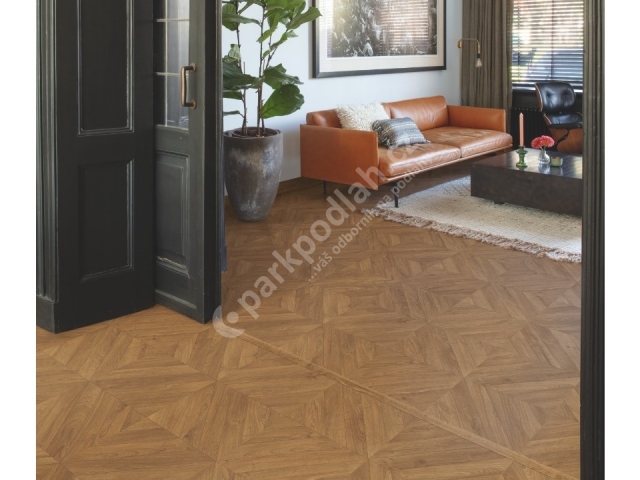 Laminátová plovoucí podlaha od belgického výrobce Quick-Step. Kolekce Impressive Patterns, dekor IPA4162 Dub Chevron hnědý.