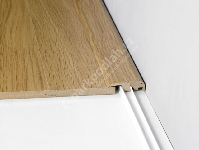 Univerzální patentovaný profil Incizo od belgického výrobce Quick-Step. 48x13mm, 1848 Dub klasický přírodní. Incizo 5 v 1 - tento univerzální patentovaný profil je multifunkční nástroj k zakončení podlahy Quick-Step. Profil lze použít jako přechodový spojovací pro stejné úrovně podlah, jako přechodový vyrovnávací pro rozdílné úrovně podlah, jako zakončovací ke stěně i jako zakončení ke koberci a v neposlední řadě jako schodový profil v mnoha způsobech provedení. Pro varianty přechodů a zakončení se montáž provádí nácvakem na plastovou vodicí kolejnici, která je součástí každého balení spolu s originálním nožem Quick-Step pro úpravu lišty. Pro použití na schodech se lišta nacvakává v kombinaci s lepením do speciálního hliníkového profilu, který se objednává zvlášť. Otevřené boční hrany stupňů a podstupňů se řeší nalepením ukončovací lamino pásky v barvě dekoru, která se objednává rovněž zvlášť. Stabilní MDF jádro těchto lišt je potažené kvalitní laminátovou fólií a tímto se lišta stává mimořádně odolnou proti mechanickému i jinému namáhání. Výhodou celého systému je jeho jednoduchá montáž. Incizo 5 v 1 - originální profil k vaší podlaze, to nejlepší řešení ...