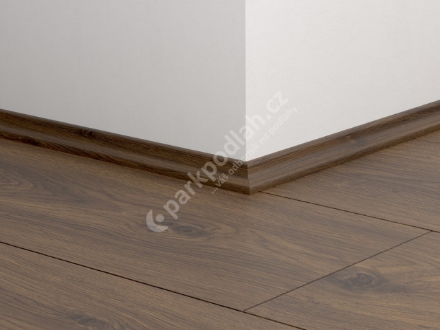 Obvodová lišta soklová od belgického výrobce Quick-Step. Typ 17x17mm, dekor 5800 Dub arašídově hnědý.