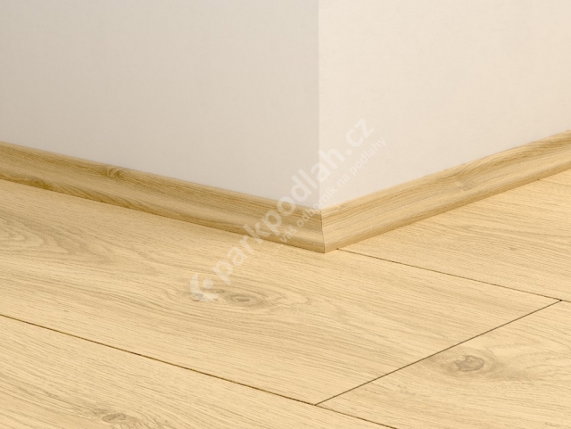 Obvodová lišta soklová od belgického výrobce Quick-Step. Typ 17x17mm, dekor 5802 Dub pouštní šedobéžový.