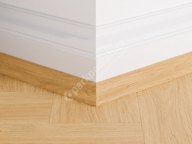 Obvodová lišta soklová od belgického výrobce Quick-Step. Typ Scotia, 17x17mm, dekor Dub kmínový 8247.