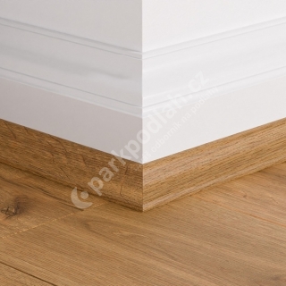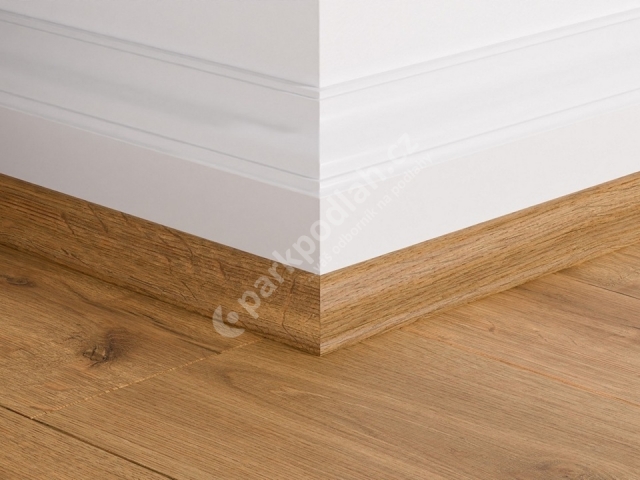 Obvodová lišta soklová od belgického výrobce Quick-Step. Typ Scotia, 17x17mm, dekor Dub lanýžový 8256.