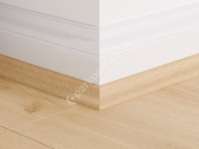 Obvodová lišta soklová od belgického výrobce Quick-Step. Typ Scotia, 17x17mm, dekor Dub mandlový 8255.