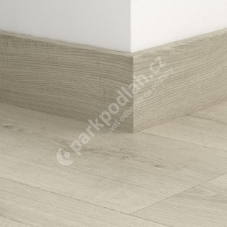 Obvodová lišta soklová od belgického výrobce Quick-Step. Typ 77x14mm, dekor 5786 Dub popelavě šedý.