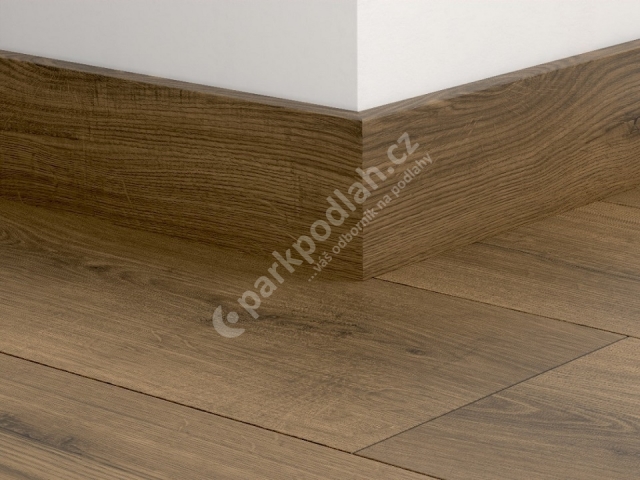 Obvodová lišta soklová od belgického výrobce Quick-Step. Typ 77x14mm, dekor 5789 Dub teplý hnědý.