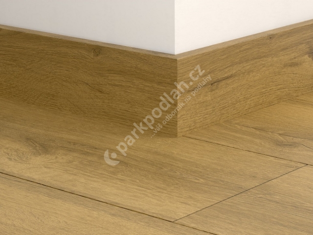 Obvodová lišta soklová od belgického výrobce Quick-Step. Typ 77x14mm, dekor 5792 Dub medově hnědý.
