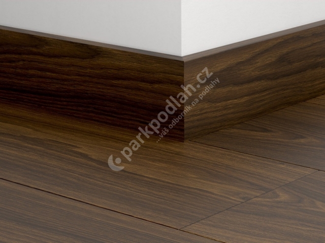Obvodová lišta soklová od belgického výrobce Quick-Step. Typ 77x14mm, dekor 5797 Dub moka hnědý.