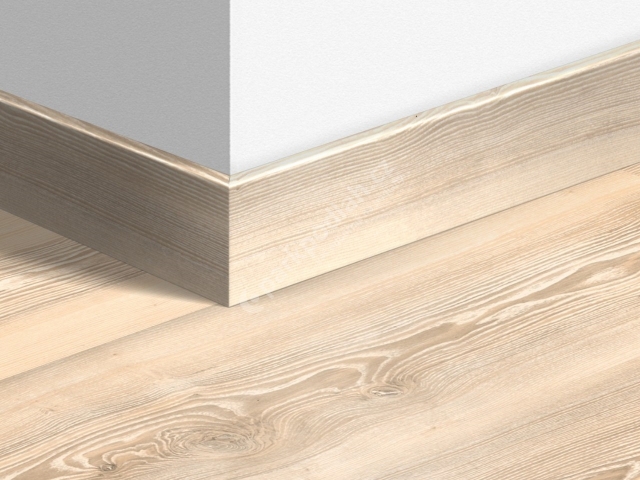 Obvodová lišta soklová od belgického výrobce Quick-Step. Typ 77x14mm, dekor Dub Bílá popelavá 1486.