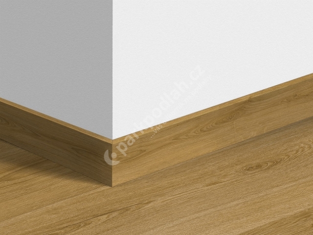 Obvodová lišta soklová od belgického výrobce Quick-Step. 58x12mm, Dub kouřový botanický 40238. Stabilní MDF jádro těchto lišt je potažené vysoce kvalitní laminátovou fólií a tímto se lišta stává mimořádně odolnou proti mechanickému i jinému namáhání. Montáž lišty se provádí nácvakem na originální plechové klipy (svorky), kdy hlavním předpokladem pro tuto montáž je dobrá rovinnost stěn. Alternativním způsobem montáže je lepení na oboustrannou pásku nebo na montážní lepidlo, možno i v kombinaci s přibíjením kalenými kolářskými hřebíčky nebo šroubováním. 58x12mm- originální lišta k vaší podlaze, to nejlepší řešení ...