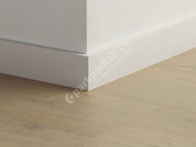 Obvodová lišta soklová od belgického výrobce Quick-Step. Typ 58x13mm, Natíratelná voděodolná střední.