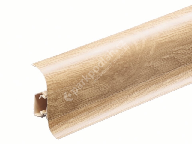 Obvodová lišta soklová od polského výrobce Salag. Rozměr lišty 56x23 mm, dekor 69 Dub Bourbon přírodní.