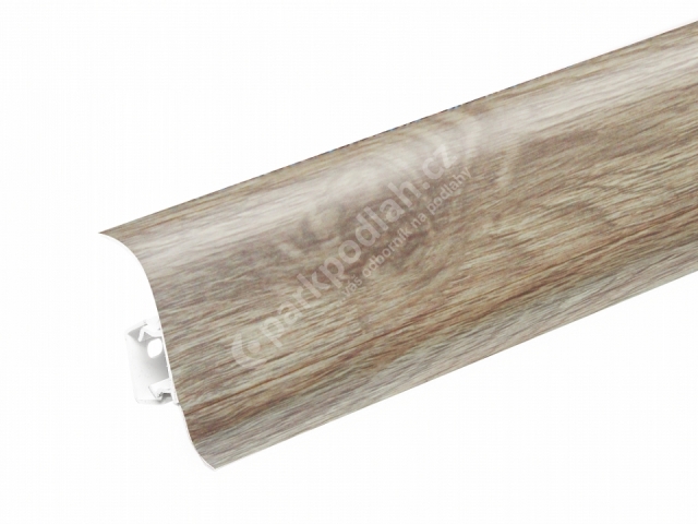 Obvodová lišta soklová od polského výrobce Salag. Rozměr lišty 56x23 mm, dekor D3 Dub Antika.