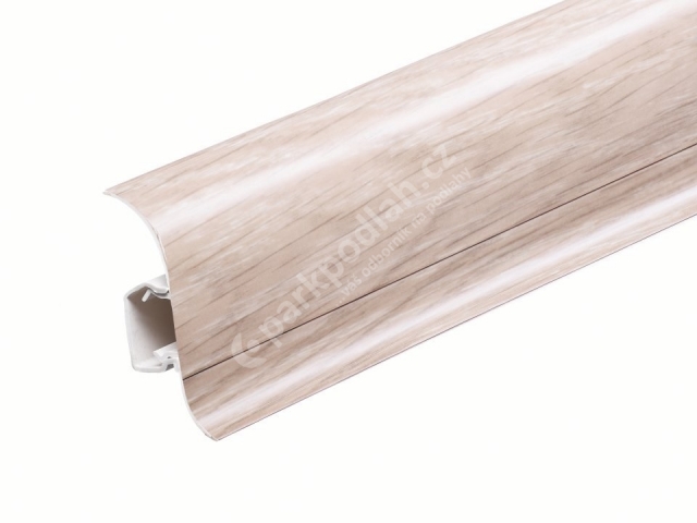 Obvodová lišta soklová od polského výrobce Salag. Rozměr lišty 56x23 mm, dekor F0 Dub pískový.