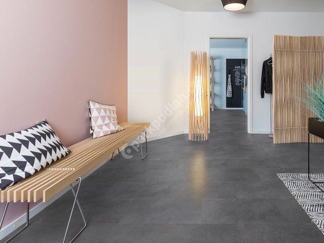 Vinylová podlaha od německého výrobce Wineo. Timeless Slate Dark. 400 Stone L (SPC Rigid) - tato kolekce se pyšní krásnými a autentickými dekory "břidlice a betonu". Každá lamela je opatřena podložkou noiseREDUCT.