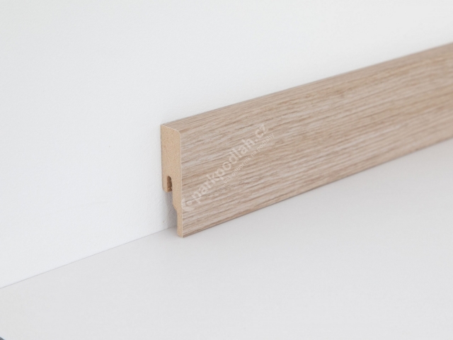 Obvodová lišta soklová od německého výrobce Wineo. Typ lišty 60x16mm, dekor Borovice Ascona Nature.