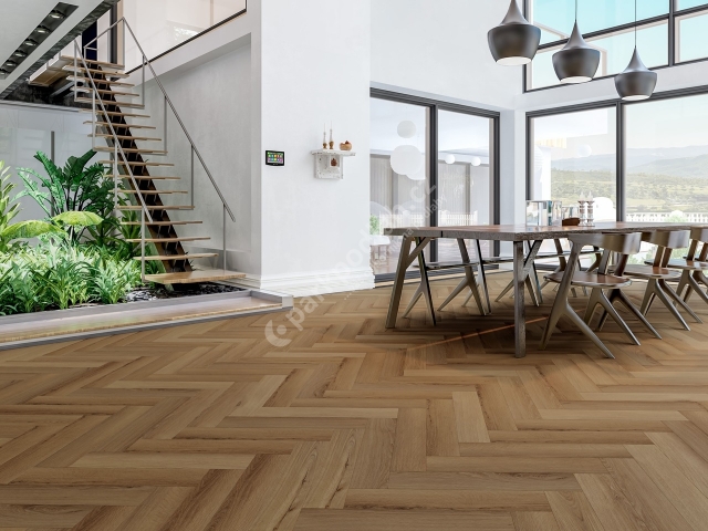 Vinylová plovoucí SPC podlaha od slovinského výrobce Winflex. 1168 Dub Glasgow. Heringbone 33 - předností této podlahy je krásný vzhled podlahy a "neuvěřitelná odolnost". Jednotlivé lamely lze pokládat do vzoru stromeček "rybí kost" nebo klasicky průběžně "na řemen".